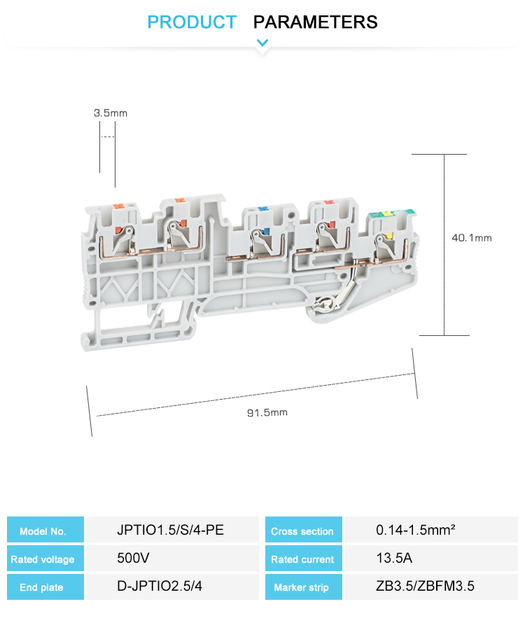 Khối đầu cuối JPT 10 đẩy vào kết nối Din Rail gắn 10 mm