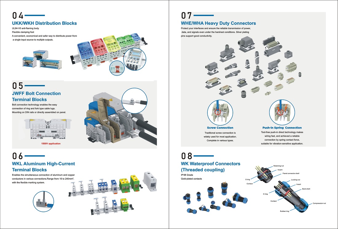 Tại gian hàng A14, WKDQ sẽ trưng bày 8 dòng sản phẩm khối thiết bị đầu cuối, bao gồm JUK, JUT, JPT, JPTV, JST, JPTFIX, JPTIO và UKK. Những sản phẩm này phục vụ cho các tình huống như điều khiển công nghiệp, thiết bị thông minh và năng lượng mới. Với các tính năng như độ tin cậy cao, khả năng phục hồi môi trường và khả năng thích ứng linh hoạt, chúng tôi cung cấp các giải pháp kết nối điện đầu cuối cho khách hàng toàn cầu.