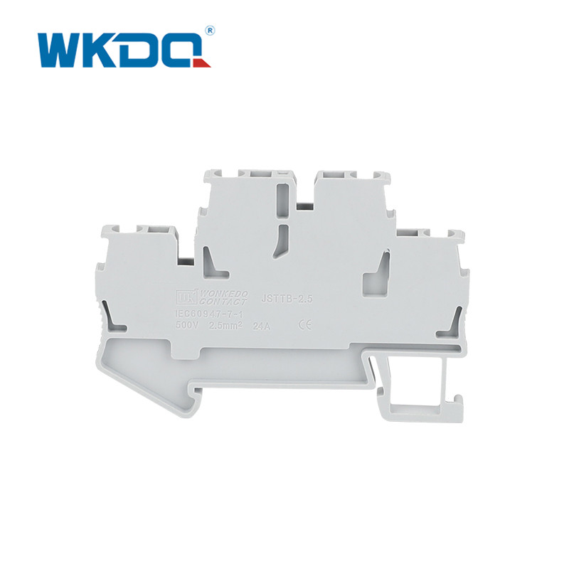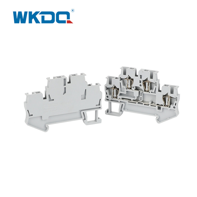 Khối thiết bị đầu cuối lò xo nhiều lớp được làm bằng PA66 chống cháy và đồng thau mạ niken. Nó có thiết kế tích hợp tiềm năng hai lớp độc đáo, cho phép một lớp vỏ duy nhất chứa được nhiều mạch và tiết kiệm không gian nối dây gấp ba lần. Hoạt động uốn không cần dụng cụ, kết hợp với cấu trúc chặt chẽ chống nới lỏng và khử khí, cùng các điểm tiếp xúc chống ăn mòn đảm bảo cung cấp điện ổn định lâu dài. Việc lắp đặt phổ dụng trên đường ray DIN 35mm phía trước và khu vực nhận dạng phẳng giúp đơn giản hóa việc quản lý. Nó tương thích với nắp cuối, cầu cắm và các phụ kiện khác, đáp ứng yêu cầu phân phối điện mật độ cao trong các kịch bản nhỏ gọn.